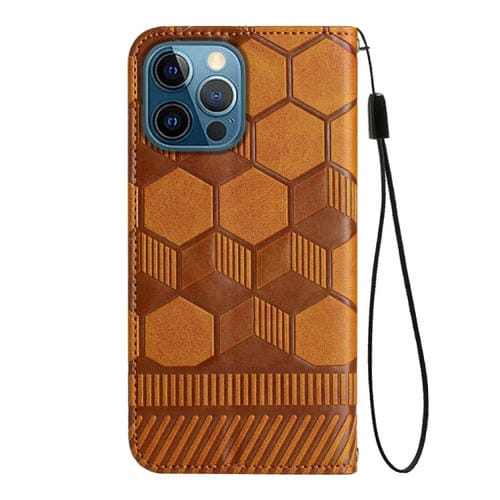 For iPhone 12 Pro Max Football Texture Magnetic Leather Flip Phone Case (Khaki)