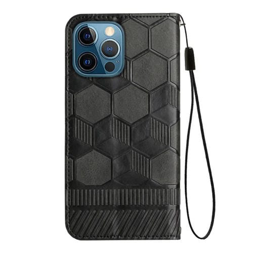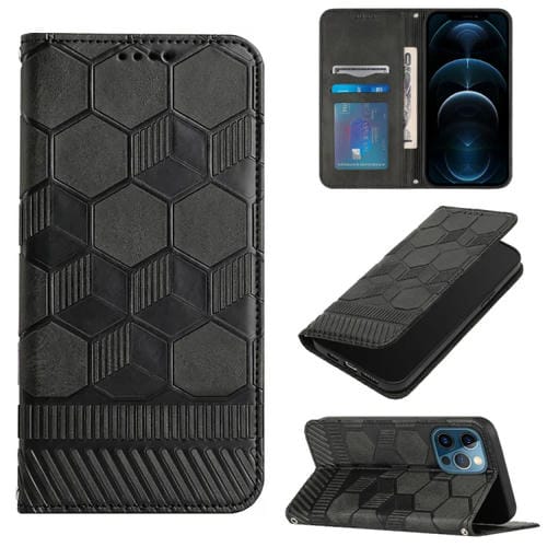 For iPhone 12 Pro Max Football Texture Magnetic Leather Flip Phone Case (Black)