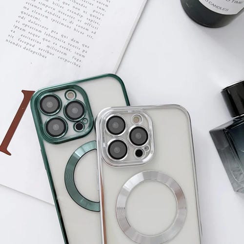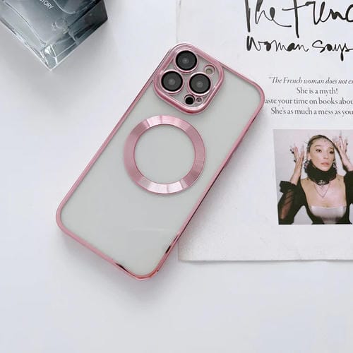 Caja de Teléfono TPU Magnética Galvanizada para iPhone 12 Pro Max Magsafe con Filtro de Polvo y Película de Lente (Rosa)