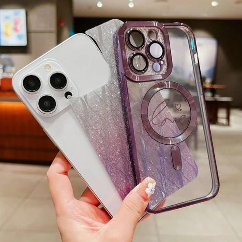 Estuche para Teléfono iPhone 12 Pro Max Magsafe Dual-Love Leaves TPU con Brillo Degradado (Azul)