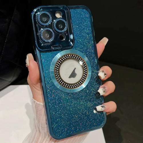 Estuche para Teléfono iPhone 12 Pro Max Starry Glitter Magsafe con Soporte para Lente (Azul)