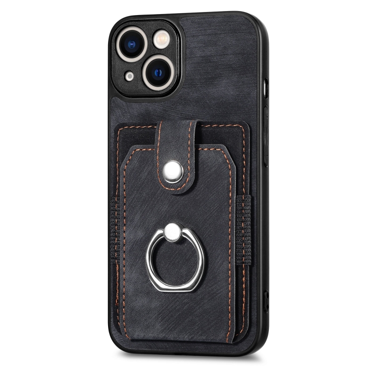 Funda para iPhone 12 Pro Retro Skin-Feel Ring Card Wallet Phone Case (Negro)