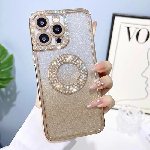 Caja de teléfono para iPhone 13 con brillo degradado de diamante electrochapado (Oro)