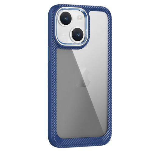 Caja de teléfono para iPhone 13 con panel posterior Transparente de fibra de carbono (Azul)