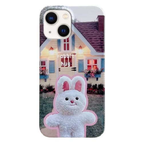 Caja de teléfono iPhone 13 PC con patrón pintado abrazo de conejito