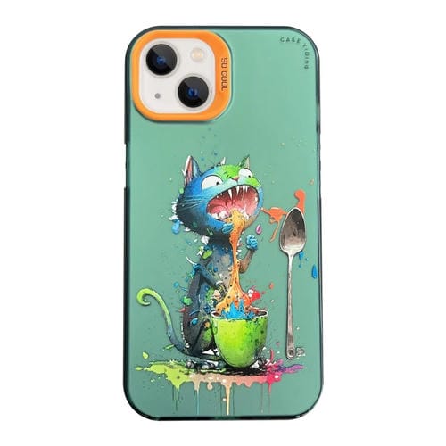 For iPhone 13 Cartoon Animal Graffiti PC+TPU Phone Case(Blue Cat)