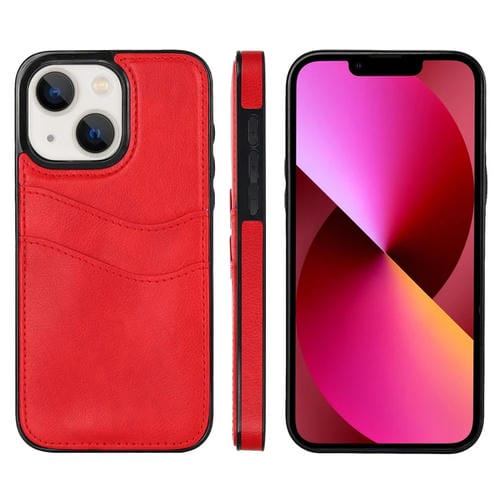 Funda para Teléfono iPhone 13 Piel de Cuero Litchi con Ranuras para Tarjetas (Rojo)