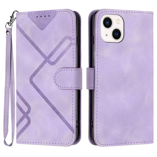 Funda de Cuero para Teléfono iPhone 13 Line Pattern Skin Feel (Púrpura Claro)