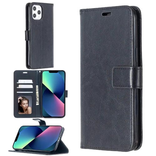 Funda de Cuero para iPhone 13 Mini Crazy Horse Texture con Tapa Horizontal Soporte Ranuras Tarjetas Billetera Marco Fotos (Negro)