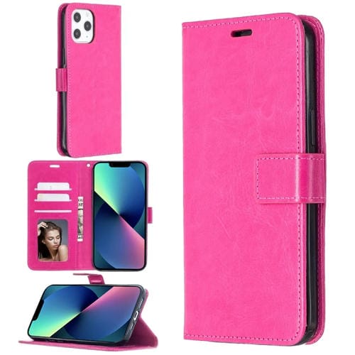 Funda de Cuero Crazy Horse para iPhone 13 Mini con Tapa Horizontal, Soporte, Ranuras para Tarjetas y Billetera y Marco de Fotos (Rosa Roja)