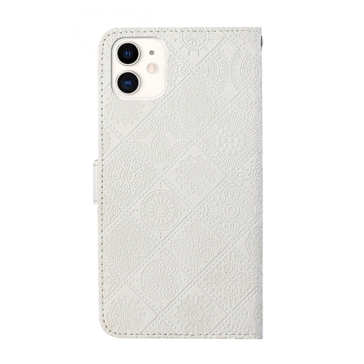 Estuche de teléfono iPhone 13 Mini cuero patrón en relieve estilo étnico (Blanco)