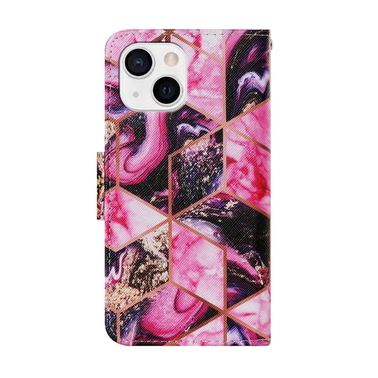 Funda de Cuero para iPhone 13 Mini con Patrón de Dibujo a Color (Mármol Púrpura)