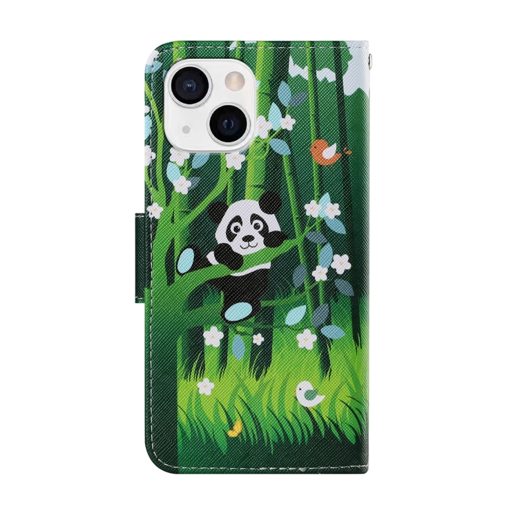 Funda para iPhone 13 Mini Cuero Patrón Dibujo a Color (Panda)