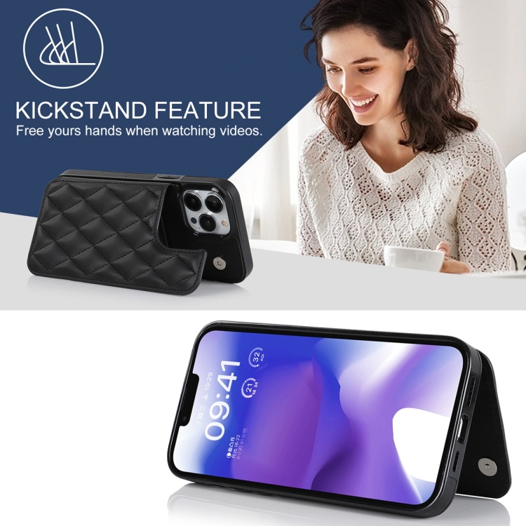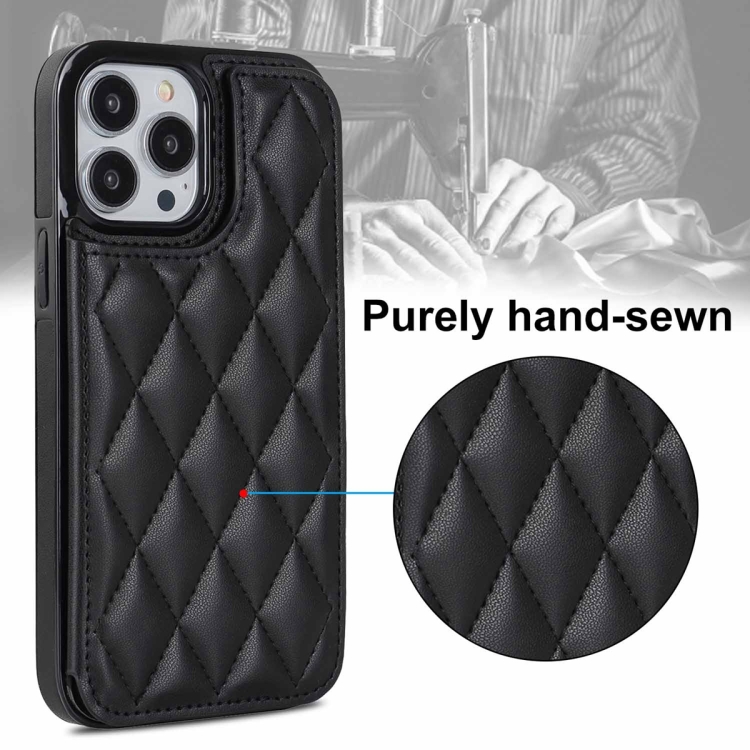 Estuche para Teléfono iPhone 13 Pro Cuero de Pu Rombal con Doble Hebilla (Negro)