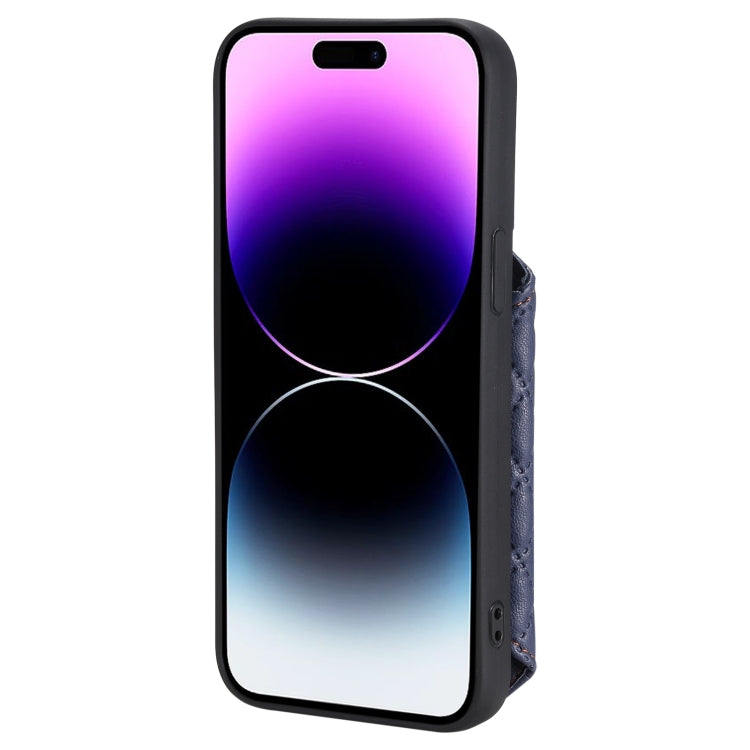 Funda para teléfono iPhone 13 Pro Grid Texture Card Bag con cordón (Azul)
