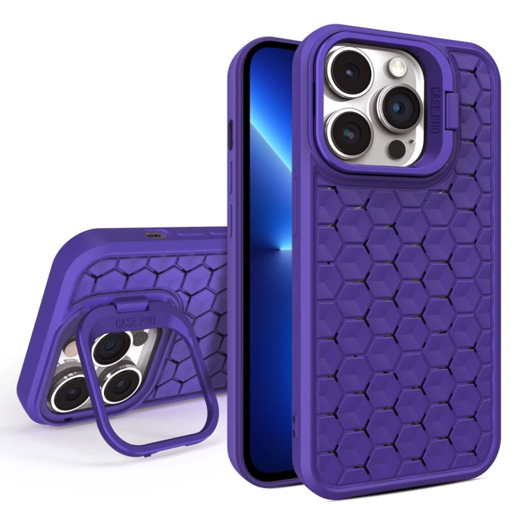 Funda Magnética para Teléfono iPhone 13 Pro Honeycomb Radiating Lens Holder (Púrpura)