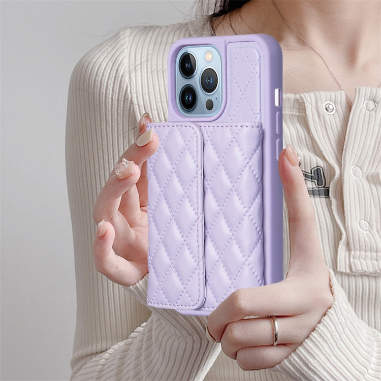 Funda Horizontal Wallet para iPhone 13 Pro Rhombic Cuero (Púrpura)