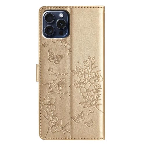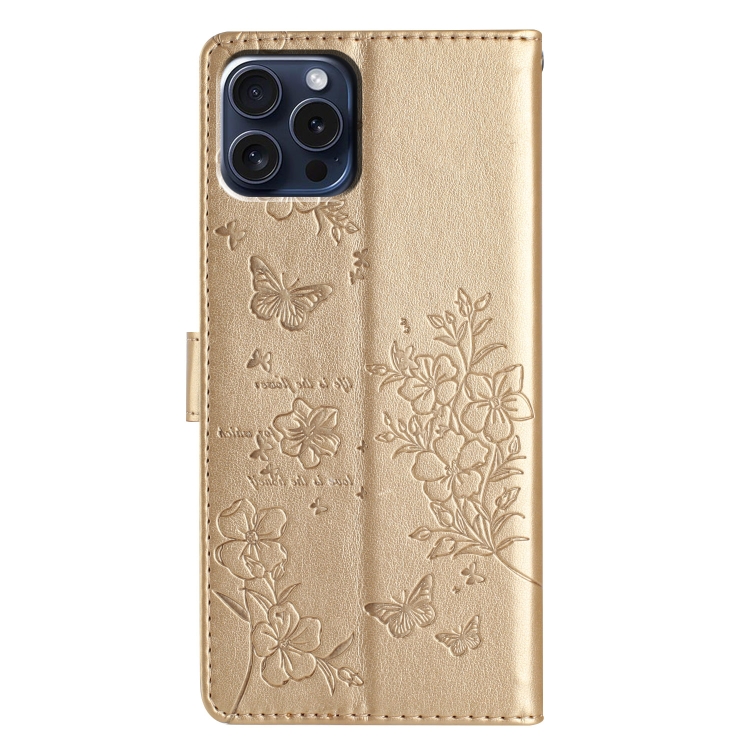 Funda para iPhone 13 Pro Max Butterfly Love Flower Cuero En Relieve (Dorado)