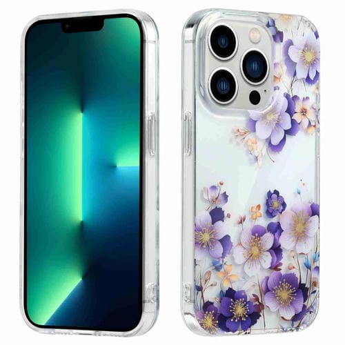 Estuche para teléfono Symphony Galvanizado para iPhone 13 Pro Max (Flor Blanca y Morada)