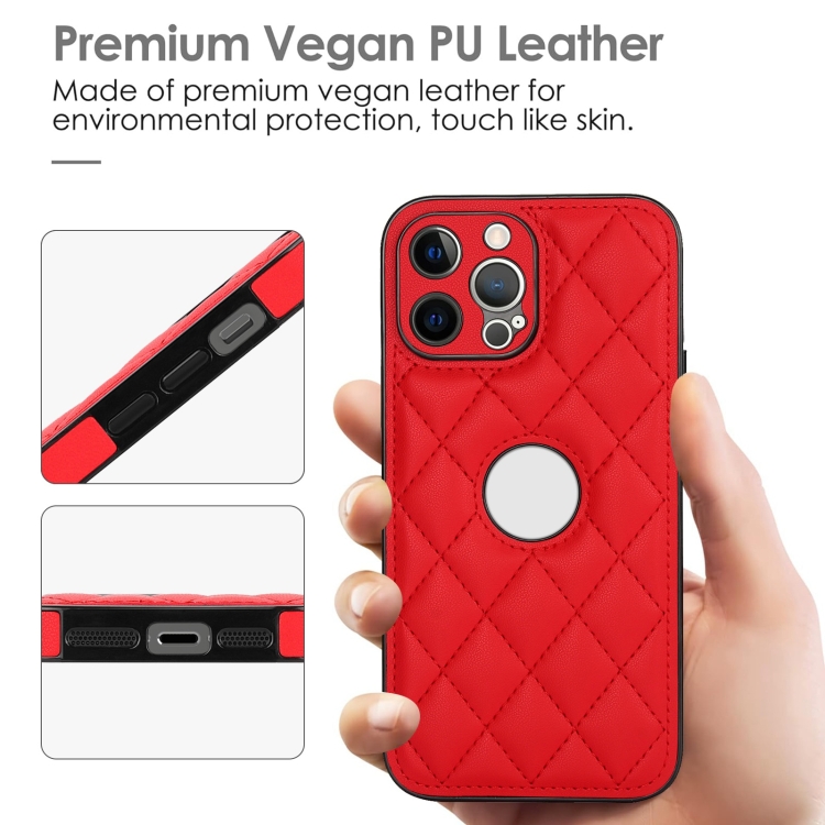 Funda para Teléfono iPhone 13 Pro Max con Contraportada de Cuero Rómbico (Rojo)