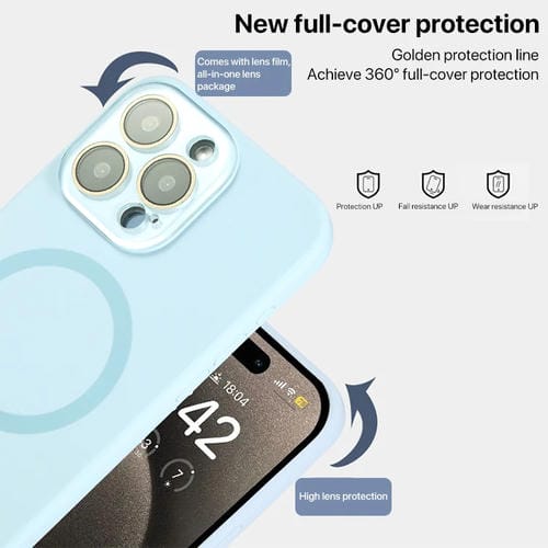 Funda para Teléfono iPhone 13 Pro Max Magsafe Cobertura Total Silicona Líquida con Película para Lentes (Púrpura)
