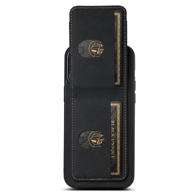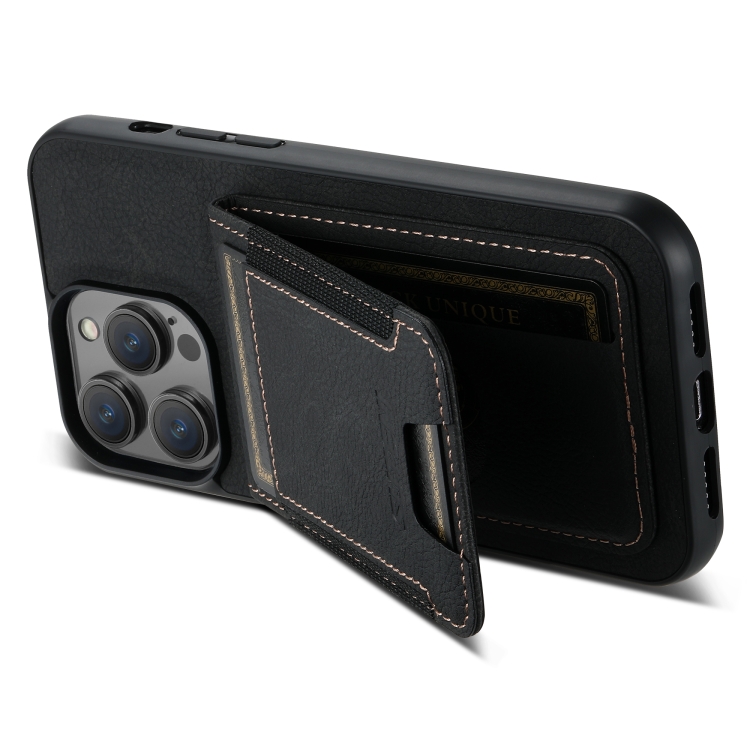 Funda para Teléfono Suteni H03 para iPhone 13 Pro Max con Soporte para Tarjeta de Cuero Litchi (Negro)
