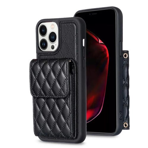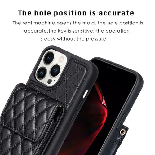Funda para iPhone 13 Pro Max Vertical Wallet Rhombic Leather Phone Case (Negro)