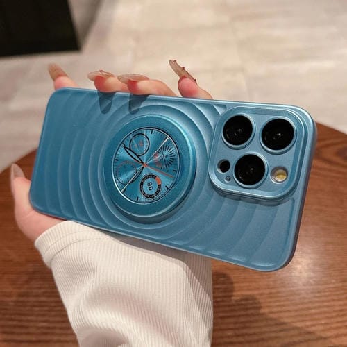 Funda para Teléfono iPhone 13 Pro Max Wave Texture PC a Prueba de Golpes con Soporte (Azul)