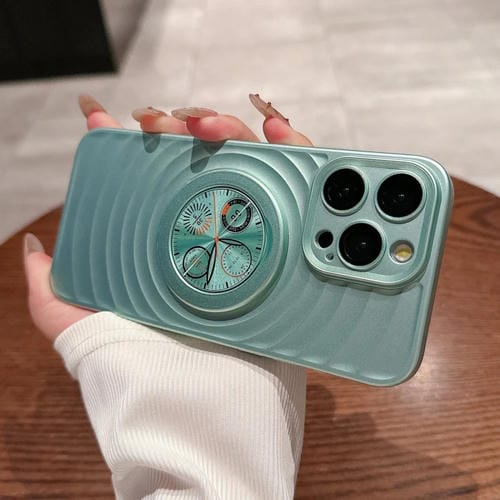 Funda para Teléfono iPhone 13 Pro Max Wave Texture PC a Prueba de Golpes con Soporte (Cian)