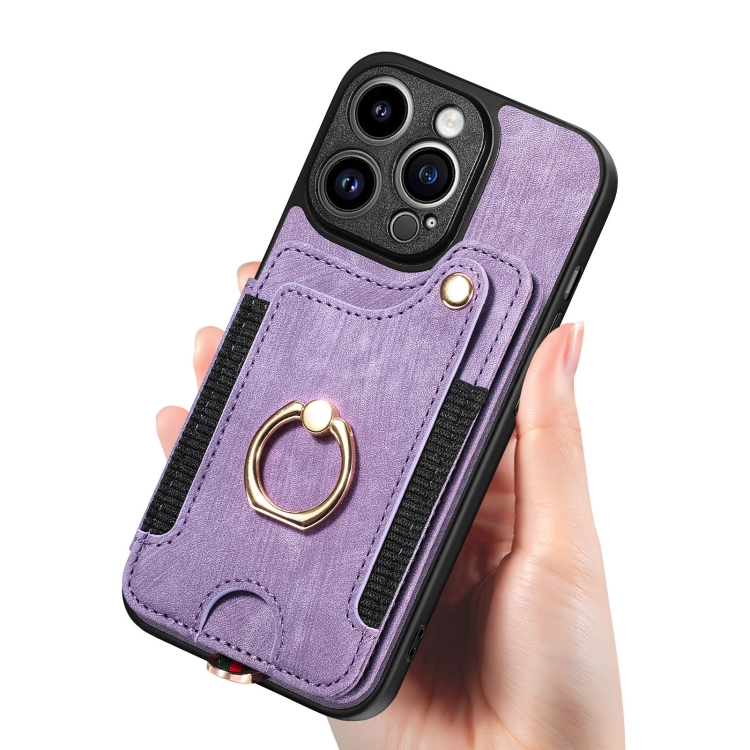 Funda para iPhone 13 Pro Retro Skin-Feel Ring Multi-Card Wallet (Púrpura)
