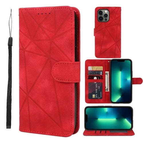 Funda para iPhone 13 Pro Skin Feel Cuero Líneas Geométricas (Rojo)
