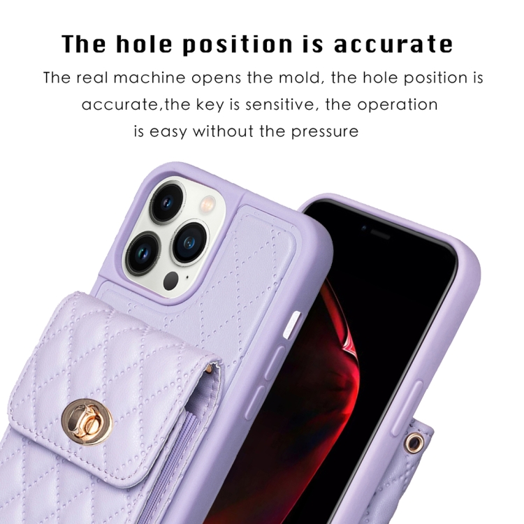 Funda para iPhone 13 Pro Rombal Cuero Vertical Hebilla de Metal (Púrpura)