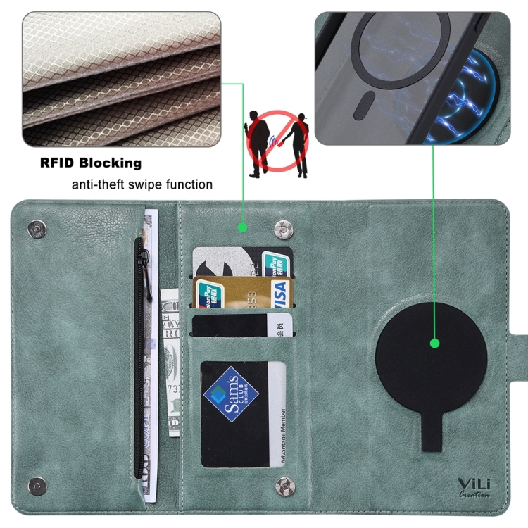 Funda para iPhone 13 Pro Vili Gv Series Cuero con Cremallera Magnética Magsafe (Verde)