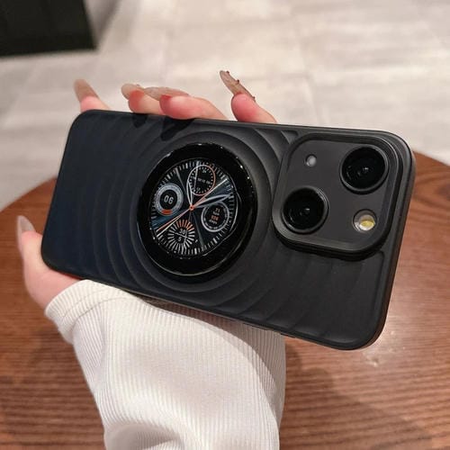 Funda para Teléfono iPhone 13 Wave Texture PC a Prueba de Golpes con Soporte (Negro)