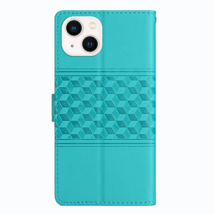 Estuche para Teléfono iPhone 14 Cuero Sensación de Piel en Relieve con Cordón (Azul)