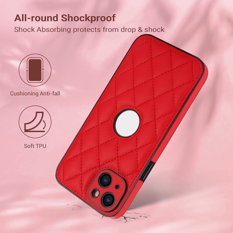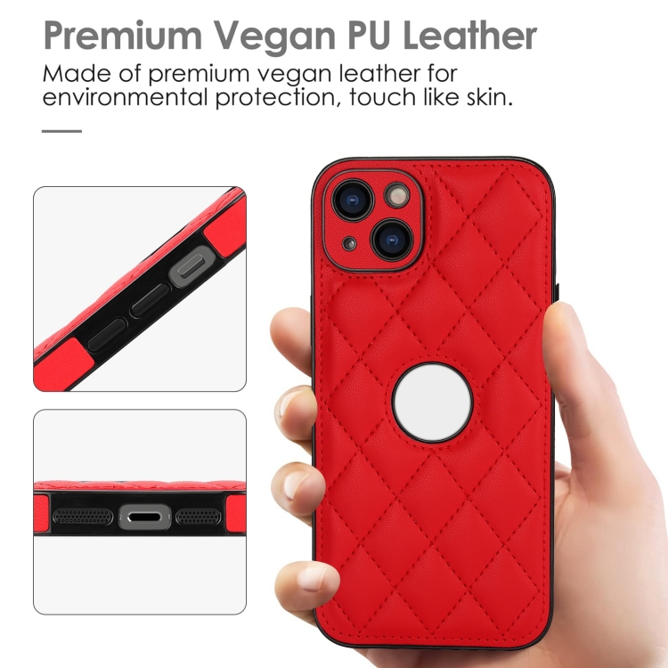 Funda para Teléfono iPhone 14 Contraportada de Cuero Rómbico (Rojo)