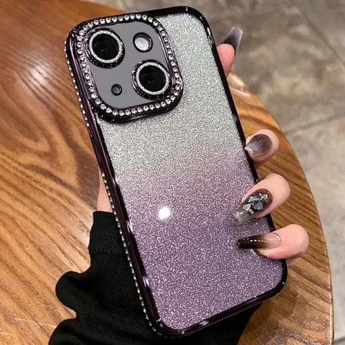 For iPhone 14 Gradient Glitter Diamond TPU Phone Case (Gradient Purple)
