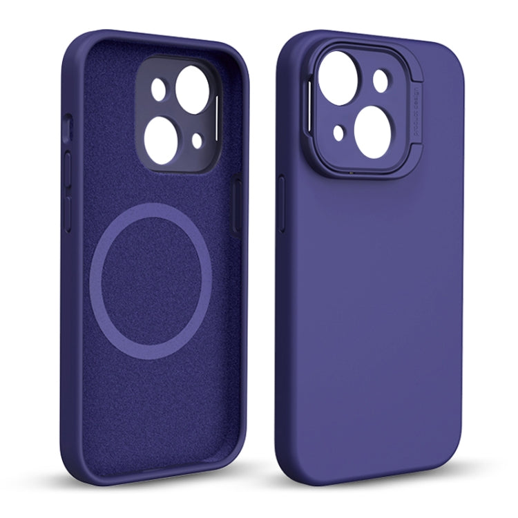 Funda para Teléfono iPhone 14 Magsafe Liquid Silicone Lens Holder (Morado Oscuro)