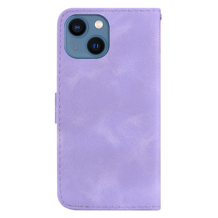 Funda de Teléfono iPhone 14 Plus Cuero En Relieve En Forma de 7 (Púrpura)