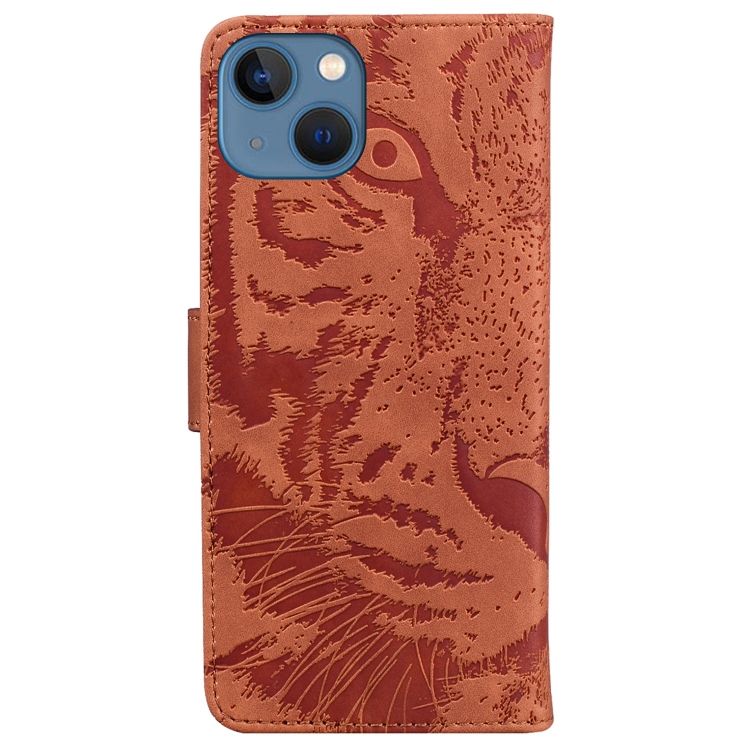 Funda de Cuero para Teléfono iPhone 14 Plus Tiger Embossing Pattern (Marrón)
