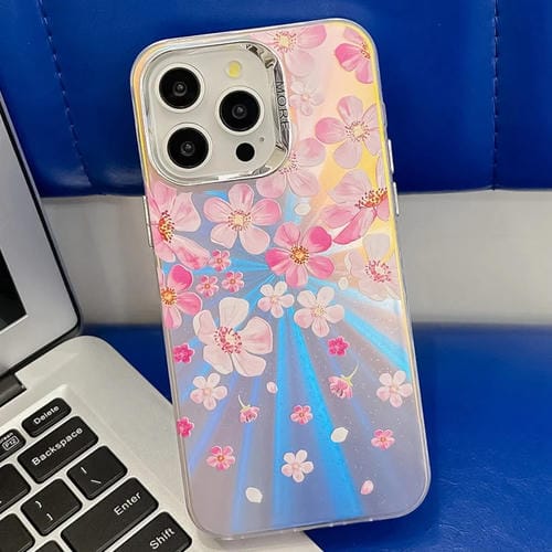 Funda para iPhone 14 Pro TPU Galvanoplastia Láser Flor Textura (Flor Rosa Ah13)