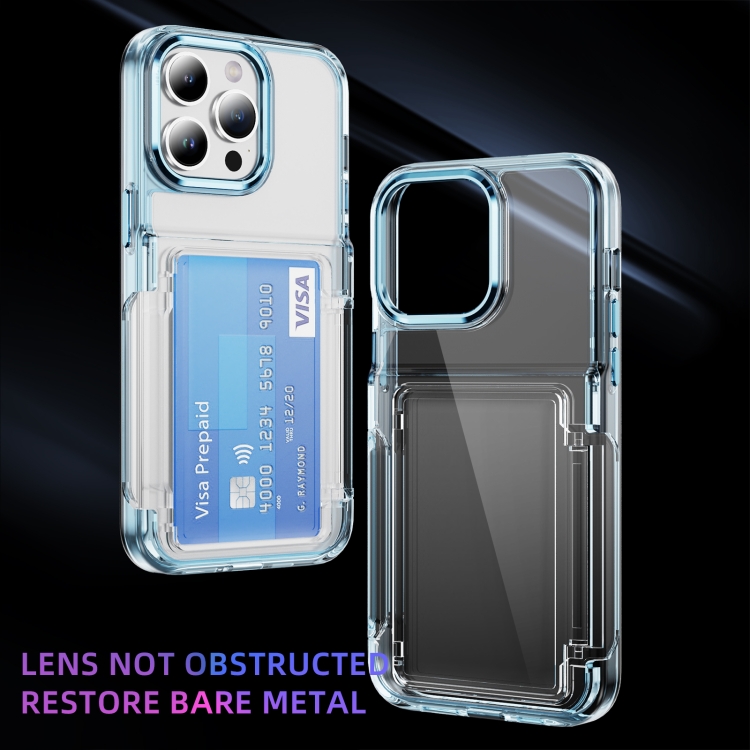 Estuche para Teléfono iPhone 14 Pro Max TPU Híbrido Acrílico con Tarjetero (Azul Transparente)