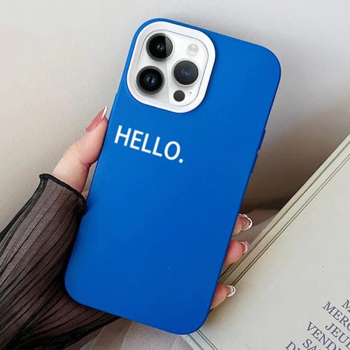 Estuche híbrido para teléfono iPhone 14 Pro Max Hello Word PC y TPU (Azul)