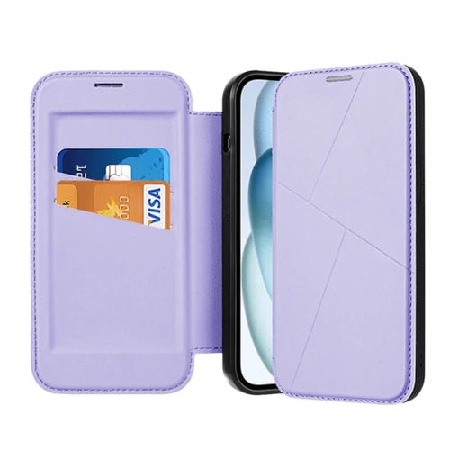 Funda para Teléfono iPhone 14 Pro Max Magnetic Armor Series Cuero Ranuras para Tarjetas Rfid (Púrpura)