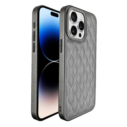 Estuche para teléfono iPhone 14 Pro Max Plaid Series 9D galvanizado (Gris Titanio)