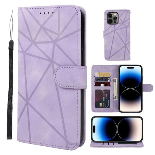 Funda de Cuero para Teléfono iPhone 14 Pro Max Skin Feel Líneas Geométricas (Púrpura)