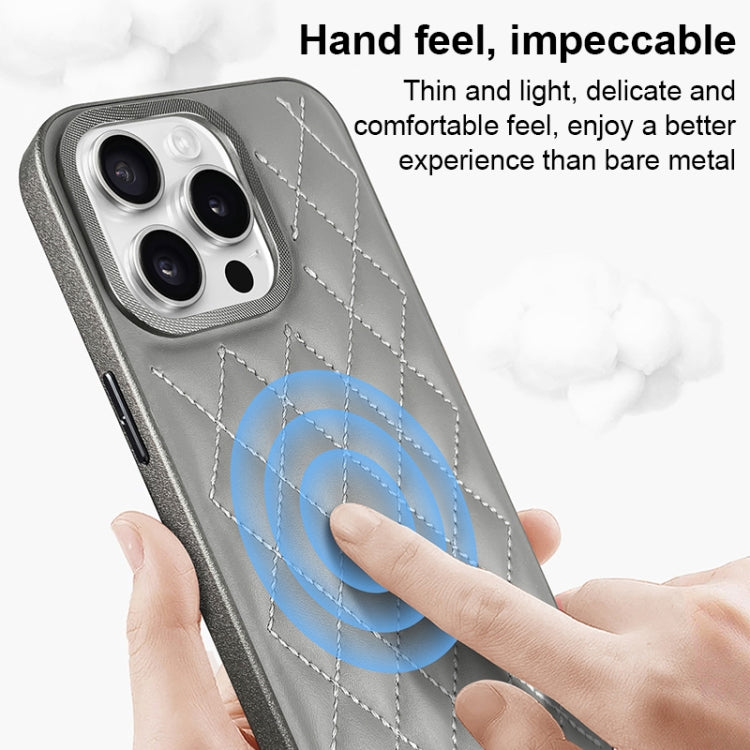 Caja para Teléfono iPhone 14 Pro Plaid Series 9D Galvanizada (Titanio Plateado)