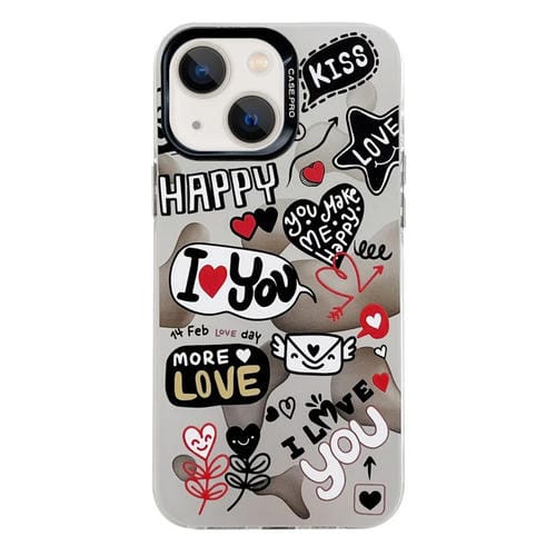 Funda Protectora PC para iPhone 14 Serie Plateada Galvanizada Escritura de Amor