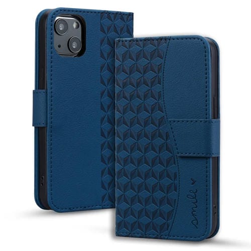 Funda para iPhone 15 Business de Cuero con Hebilla de Diamante y Cordón (Azul Real)