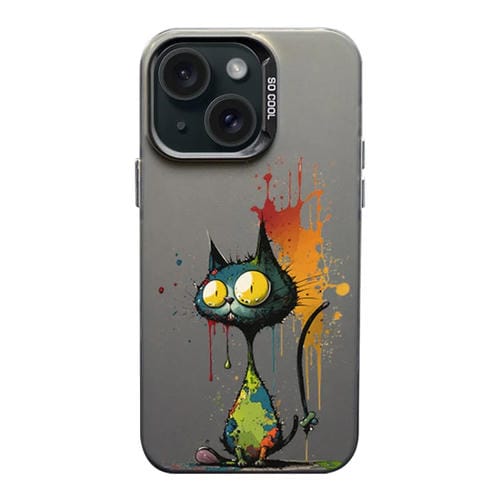 For iPhone 15 Color Ink Frosted PC+TPU Phone Case(Big Eyed Cat)